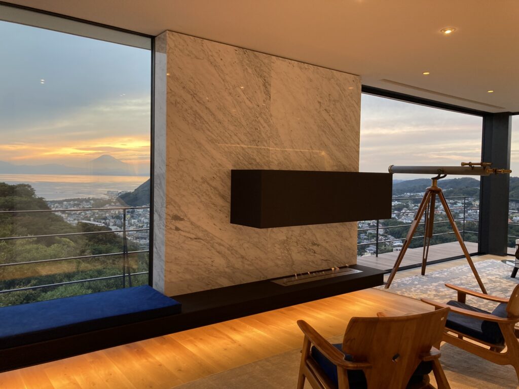 葉山の崖の上に位置し、相模湾・富士山を一望できる邸宅です。