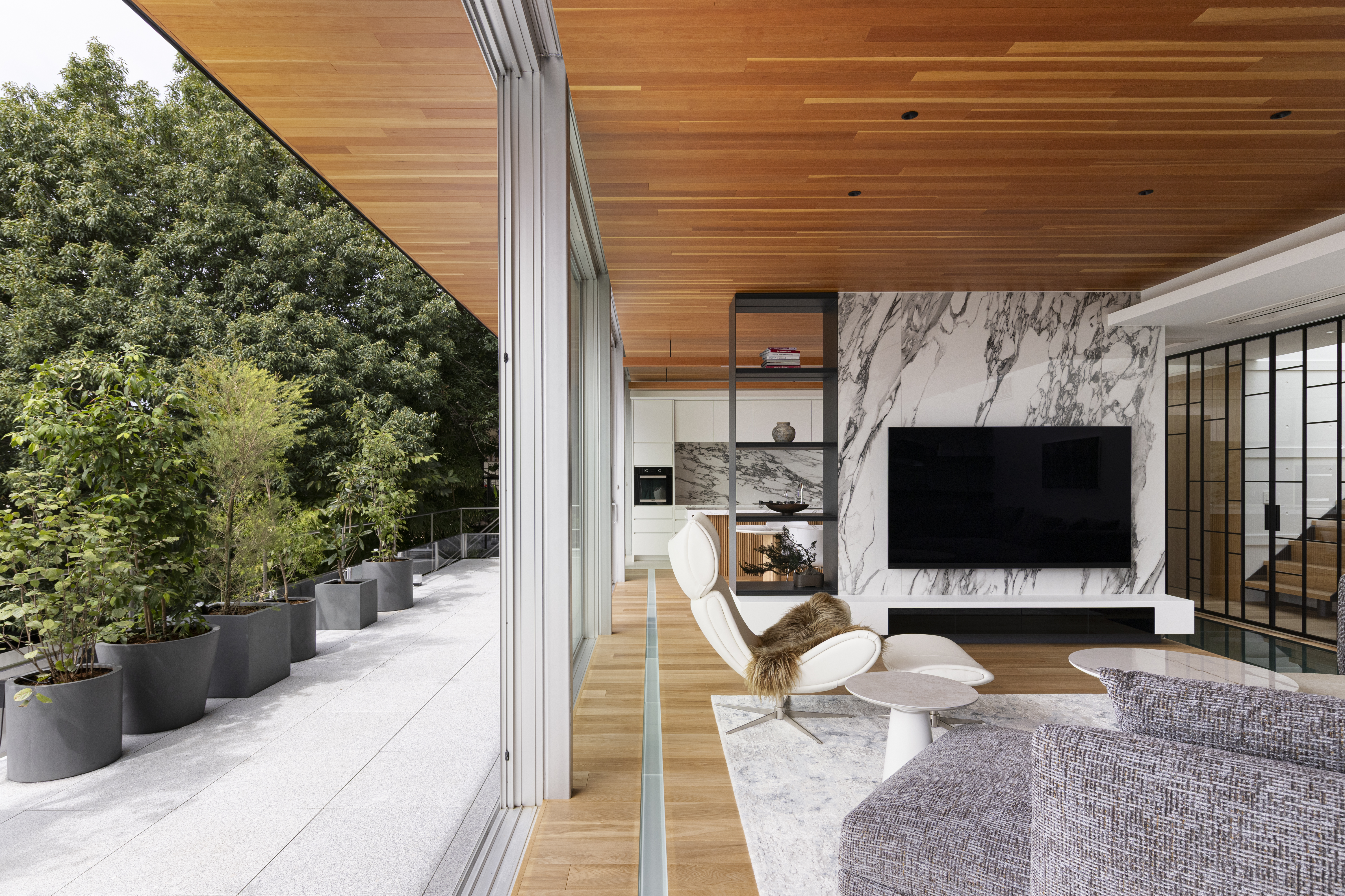 既存の躯体のボリューム感を生かしつつ、“都心の喧騒を忘れられるような生活”を可能にすべく、