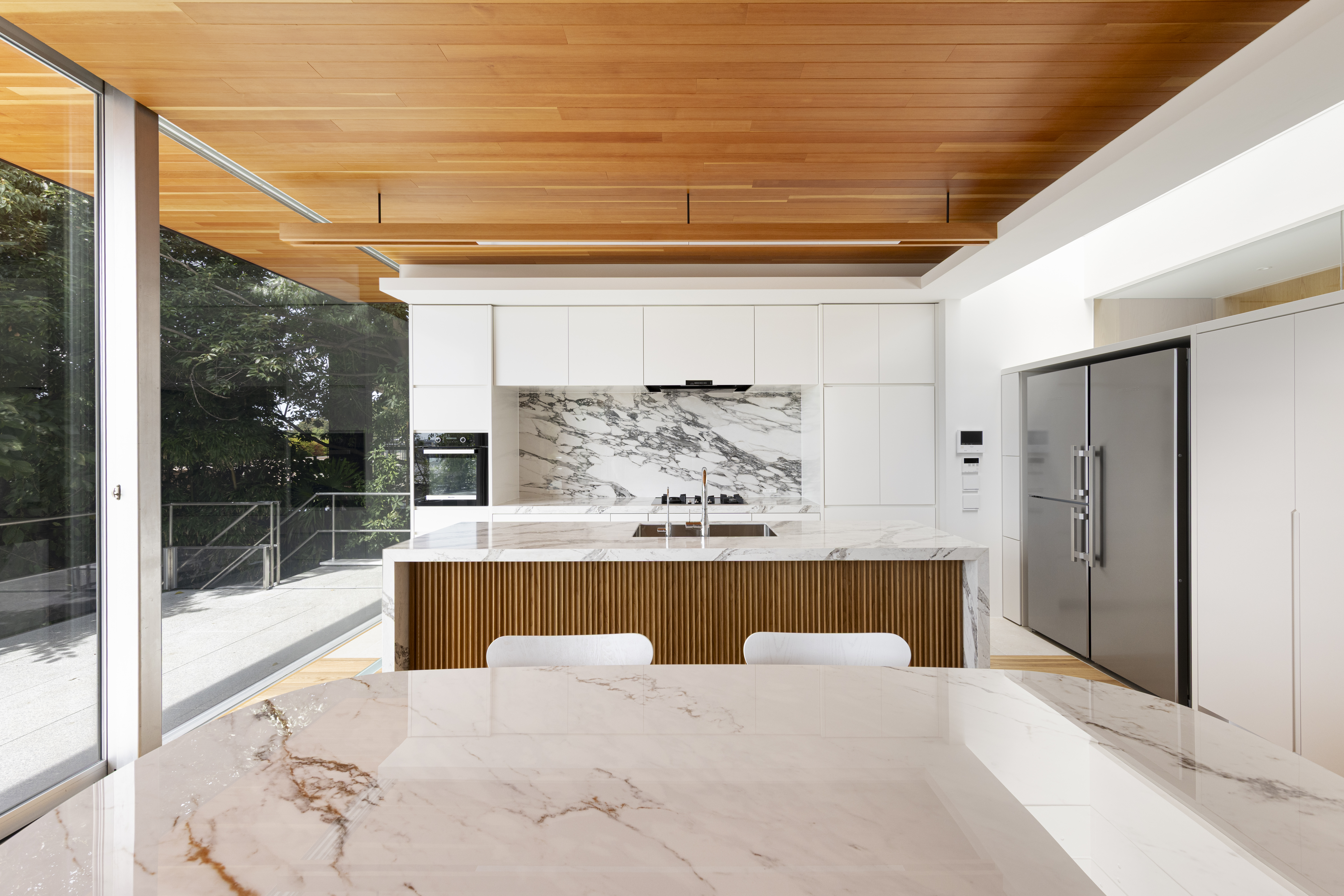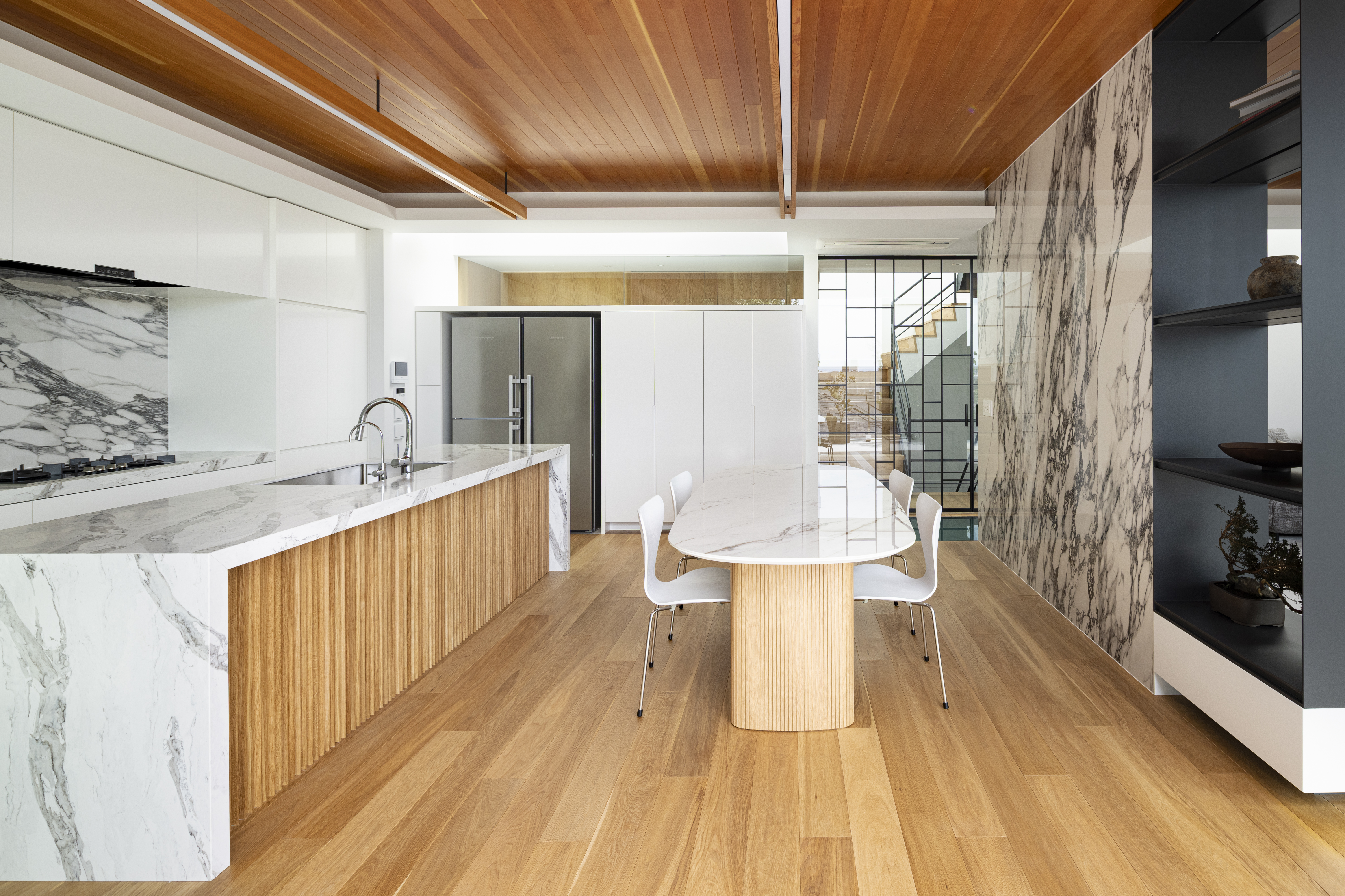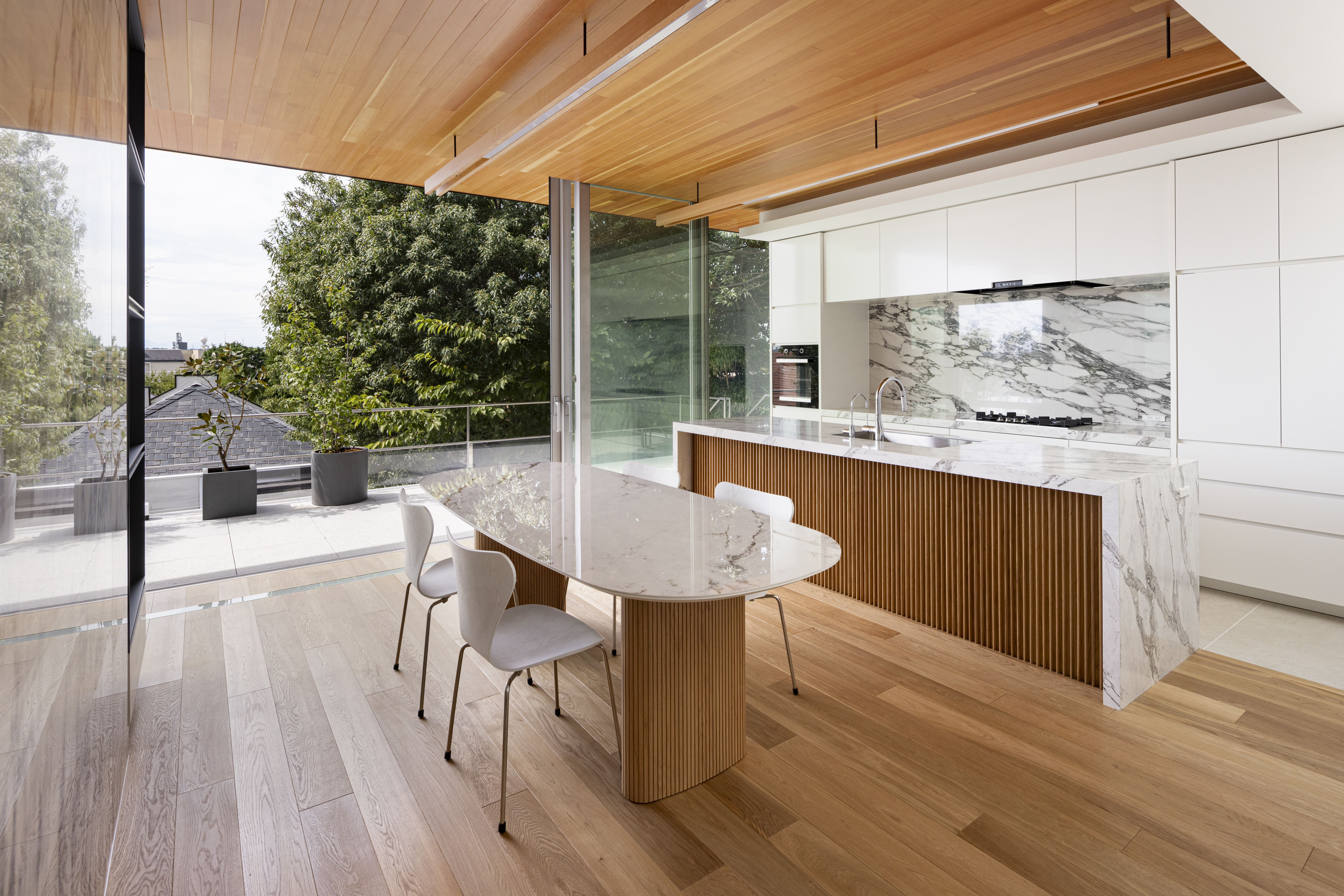 内外を一体感を持って感じる仕掛けを随所に作りながら、